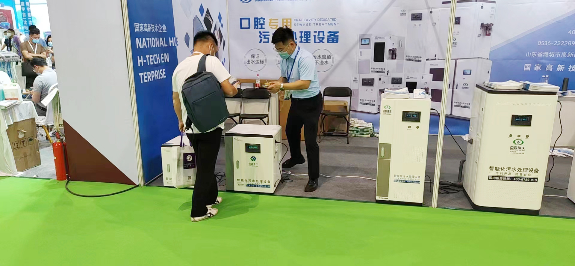 據悉,中科瑞沃本次帶來的參展產品為口腔專用污水處理設備ZKYL-A、ZKYL-B、ZKYL-C和ZKYL-E。這類產品擁有故障報警系統和微電腦智能化控制系統,可以實時掌控設備運行狀態,實現了去人工化和去管理化,擁有操作方便、產物潔凈、使用壽命長等顯著特點。